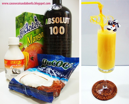 Dei uma passadinha no mercado para comprar suco de manga, leite de côco e côco ralado a fim de testar um drink que pretendo servir aos meus convidados. Misturei os ingredientes com um pouco de vodka Absolut e gostei do resultado. Manga e côco são frutas abundantes na Tailândia e achei que a combinação ficou harmônica e saborosa. Para decorar a flute onde coloquei a bebida, usei um canudo amarelo e um fofo mini—catavento em forma de flor que comprei na loja CASA & IDEAS no Chile.