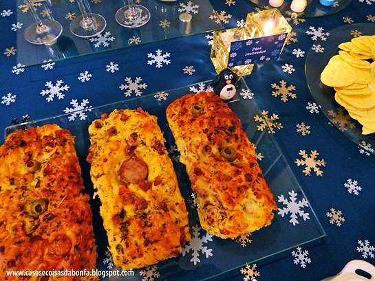Torta salgada em formato de pista de ski feita pela amiga Mari Sawamura